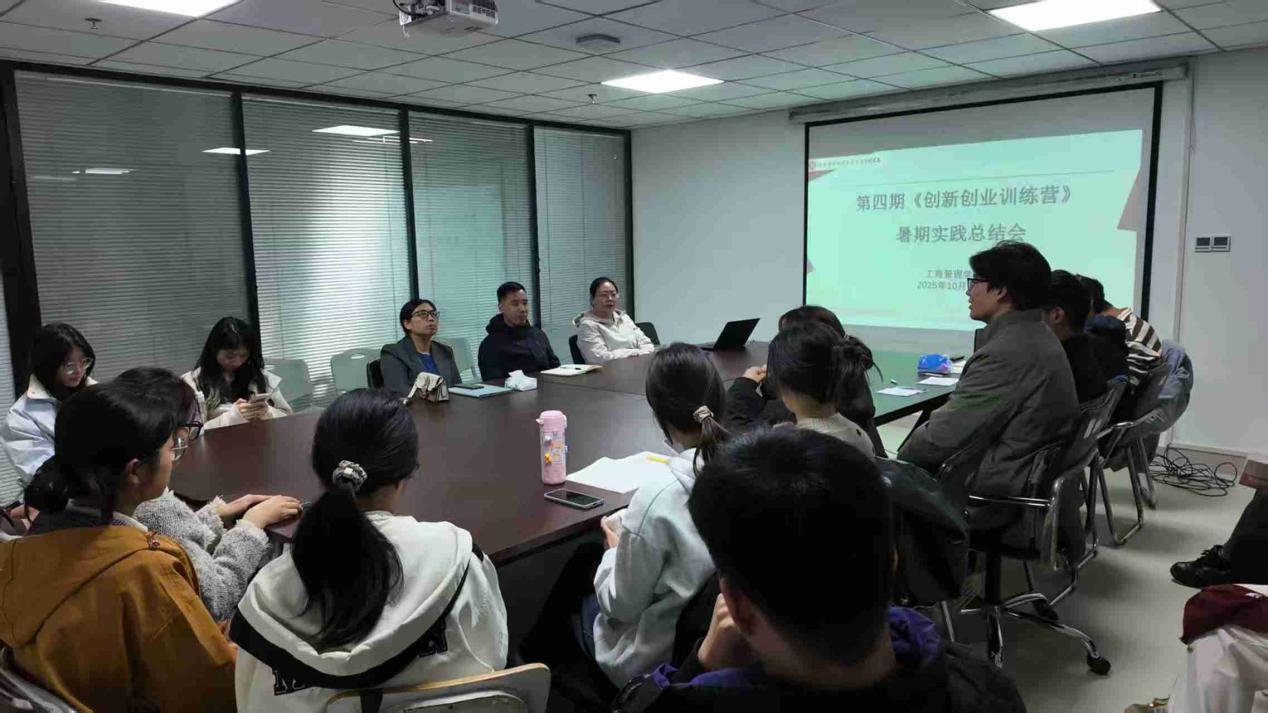 2025年10月21日晚,管理学部工商管理学院在教学科研楼B8-2会议室举行第四期“创新创业训练营”暑期实践总结会。学院副院长陈钢,市场营销教研室党支部书记赵红瑞、董伶俐教授,以及全体参训学员参加。