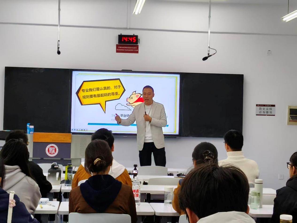 此次课程特邀抖音即时零售官方认证讲师、河南广电集团声势传媒电商负责人、滑县供销社电商矩阵项目负责人易峰担任主讲。易峰围绕抖音即时零售运营逻辑进行深度分享,全面解剖新手正确且高效地进行直播的规范和技巧,详解货盘搭建、场景对接要点等直播关键环节的注意事项,并结合实操案例拆解创业落地的具体路径。